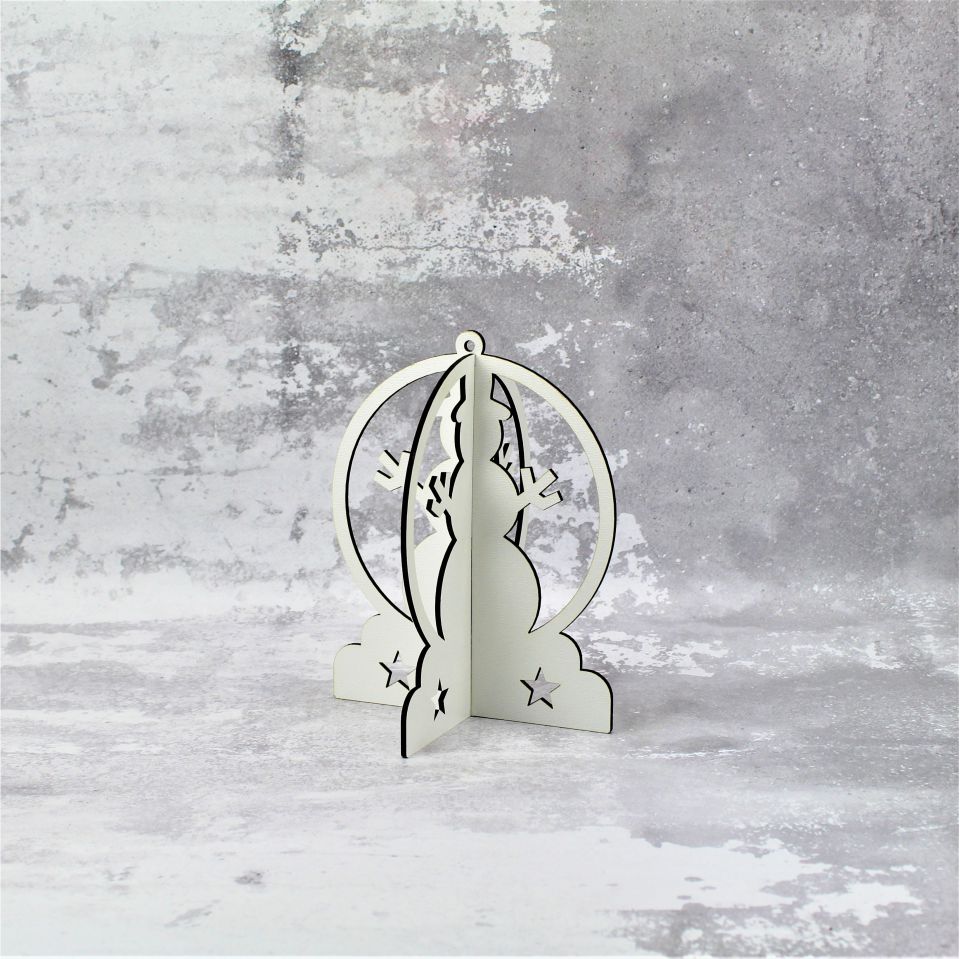 Bombka 3 D wykonana z płyty HDF z dbałością o każdy szczegół, wycinana laserowo, w kolorze białym.