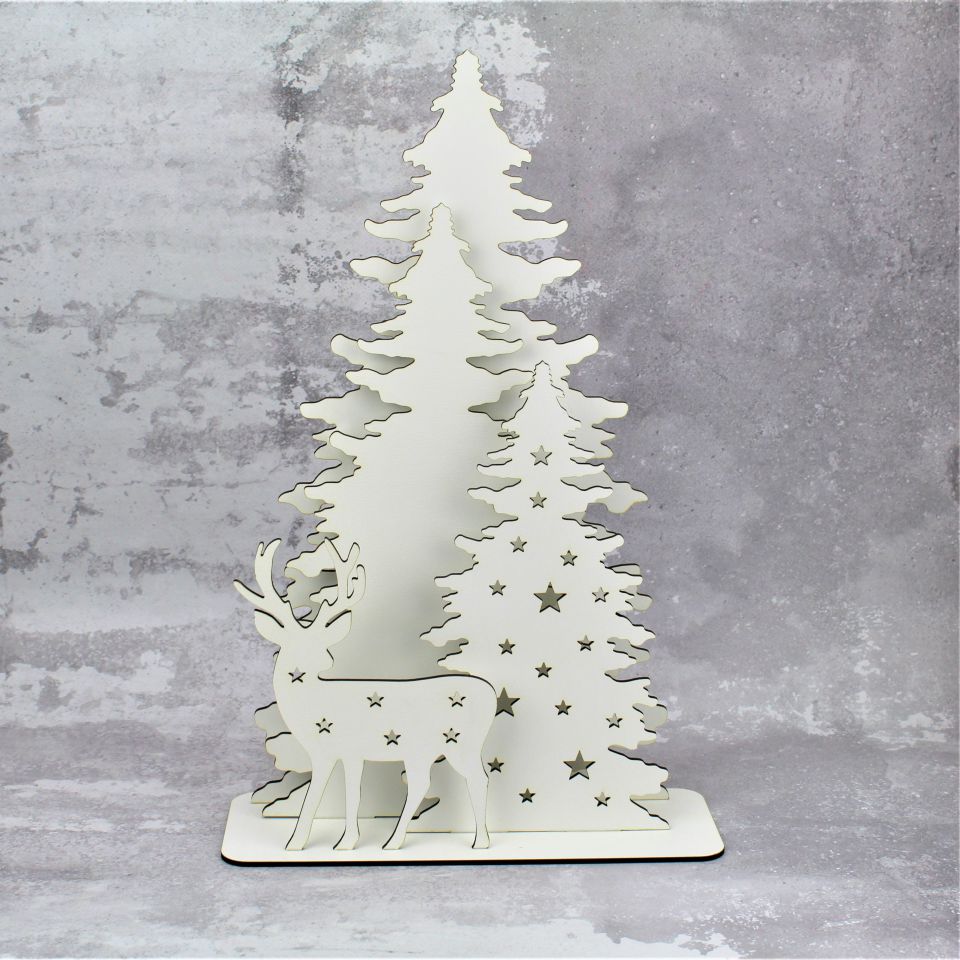 - wykonana z białej płyty HDF z dbałością o każdy szczegół, wycinana laserowo, o wymiarach 26 x 40 cm