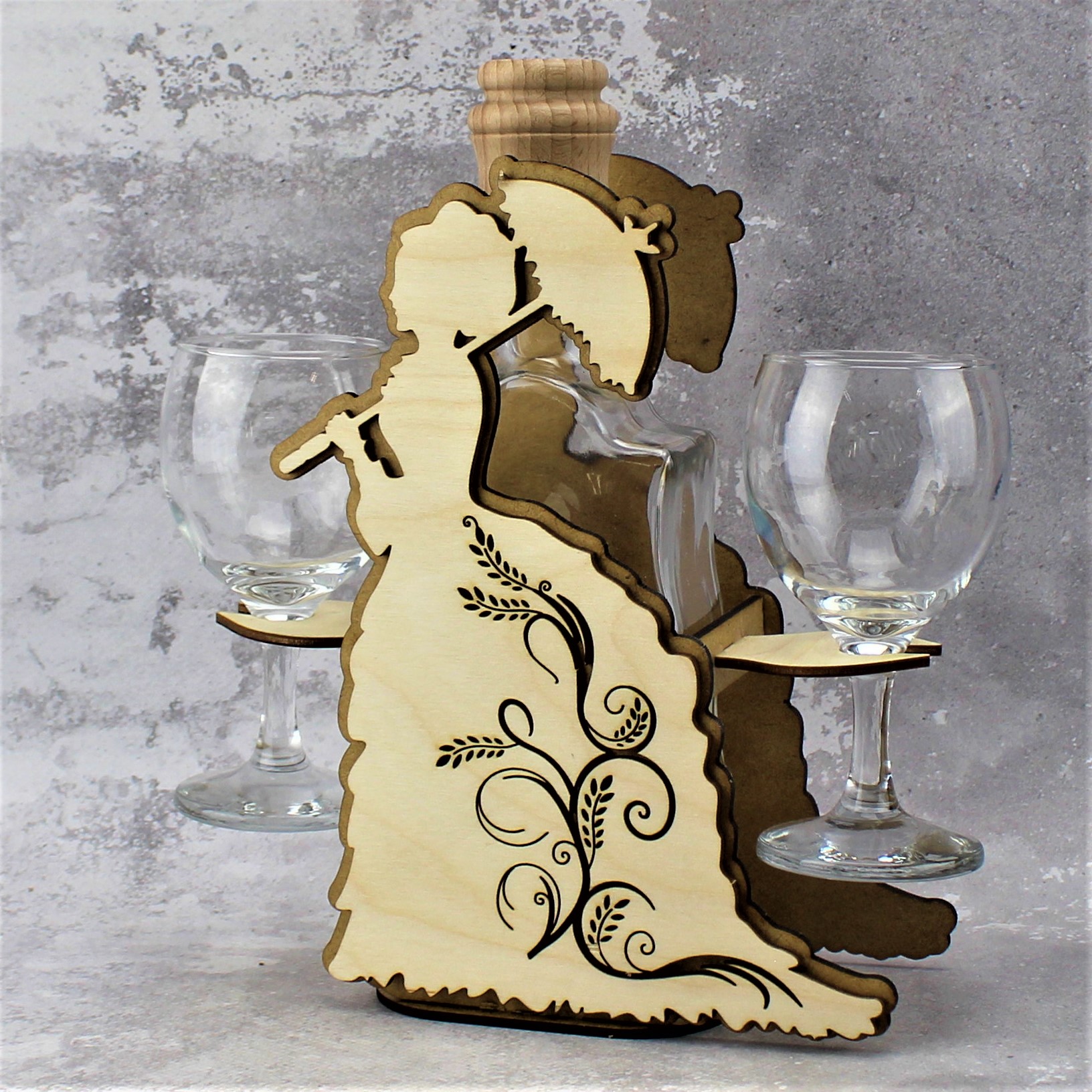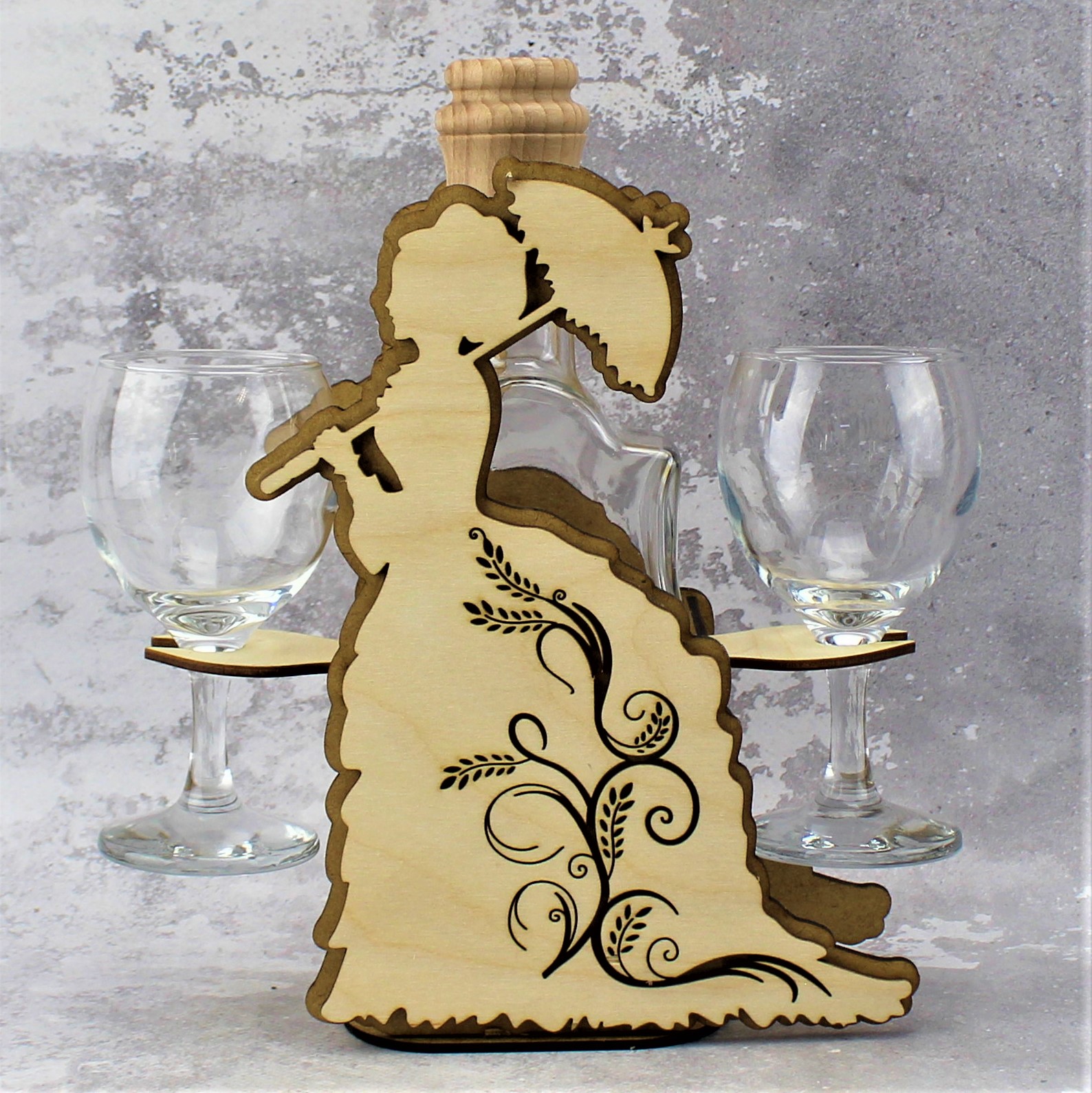 - drewnianą kolorową podstawę wycinaną laserowo z wizerunkiem damy w pięknej sukni