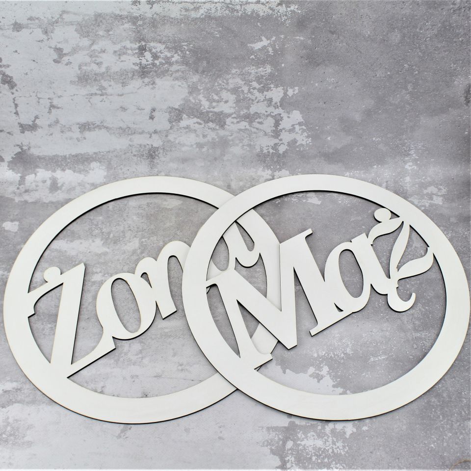 Dekoracja Ślubna Koło Białe 36 cm Mąż Żona