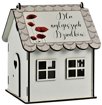 Domek na słodycze z otwieranym dachem, z pewnością zachwyci każdą Babcię i Dziadka. Sprawdzi się idealnie jako opakowanie do przechowywania słodyczy ale będzie również piękną i praktyczną ozdobą w domu każdej babci.