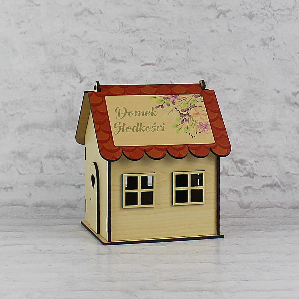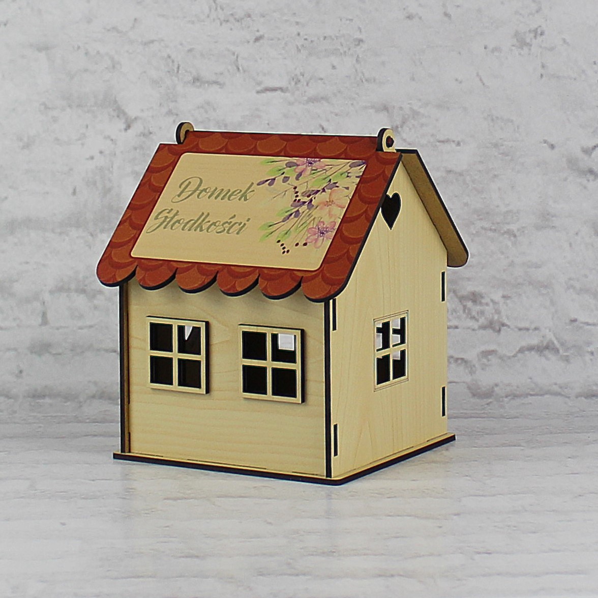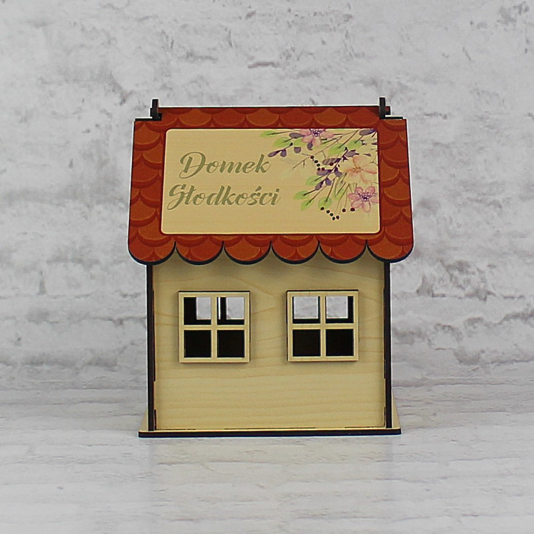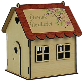 Wystarczy uzupełnić wnętrze domku ulubionymi słodyczami solenizanta / solenizantki ( we własnym zakresie) i słodki upominek będzie gotowy do wręczenia.