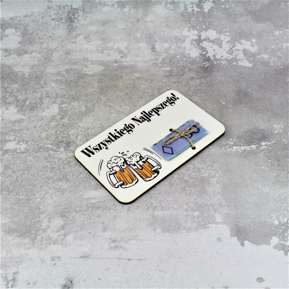 Zbliżają się urodziny Twoich najbliższych, znajomych czy przyjaciół ? Szukasz alternatywy dla wręczenia pieniędzy zamiast tradycyjnej koperty? Proponujemy Ci elegancką kartkę drewnianą – bon podarunkowy, z kolorową grafiką oraz życzeniami która z pewnością będzie również piękną pamiątką.