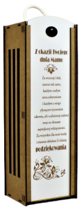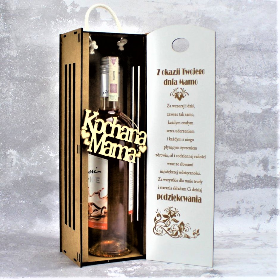 Piękny upominek – skrzynka na butelkę wina z grawerem oraz życzeniami dla Ukochanej Mamy.
