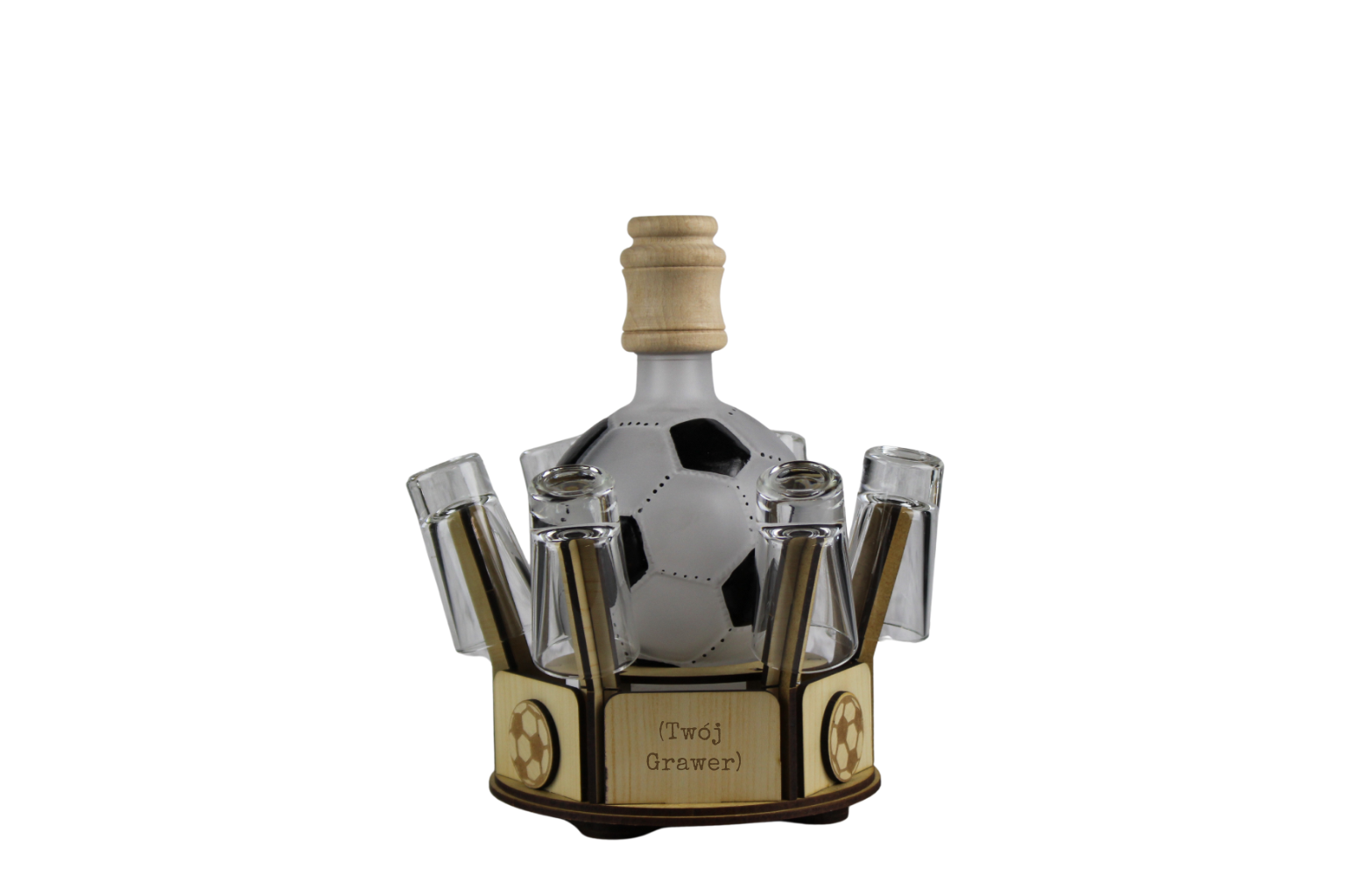 • szklaną karafkę z korkiem na alkohol w kształcie piłki 0,5 l