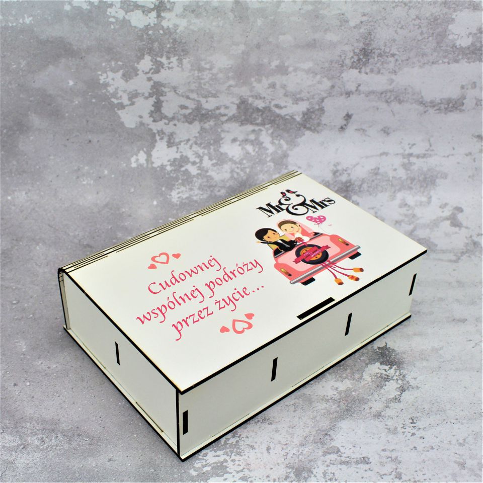 Kasetka z nadrukiem nie tylko pięknie wygląda ale jest też praktycznym przedmiotem – można w niej ukryć pamiątkowe drobiazgi.