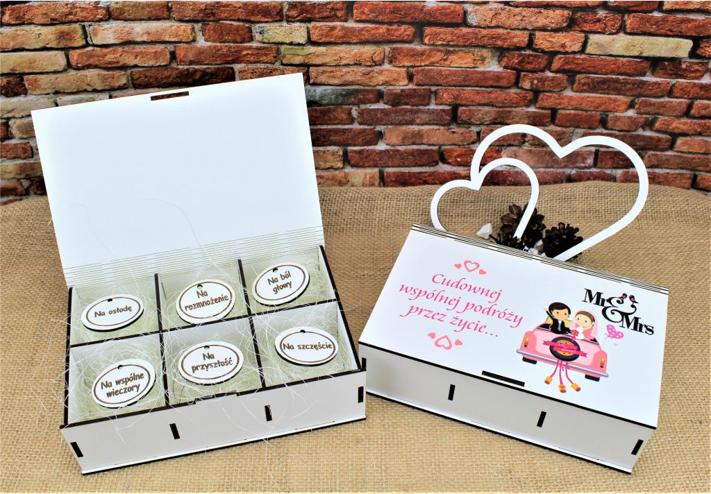 Ślub i Wesele to szczególny moment w życiu każdej pary. Oryginalny upominek podarowany prosto z serca, to idealny pomysł, by sprawić radość Młodej Parze. Jeśli właśnie zbliża się ten wyjątkowy dzień w życiu Twoich znajomych, rodzeństwa czy przyjaciół i nie masz pomysłu na prezent, proponujemy fantastyczną pamiątkę – kasetkę z kolorowym nadrukiem oraz żetonami, w której można ukryć pamiątkowe drobiazgi.
