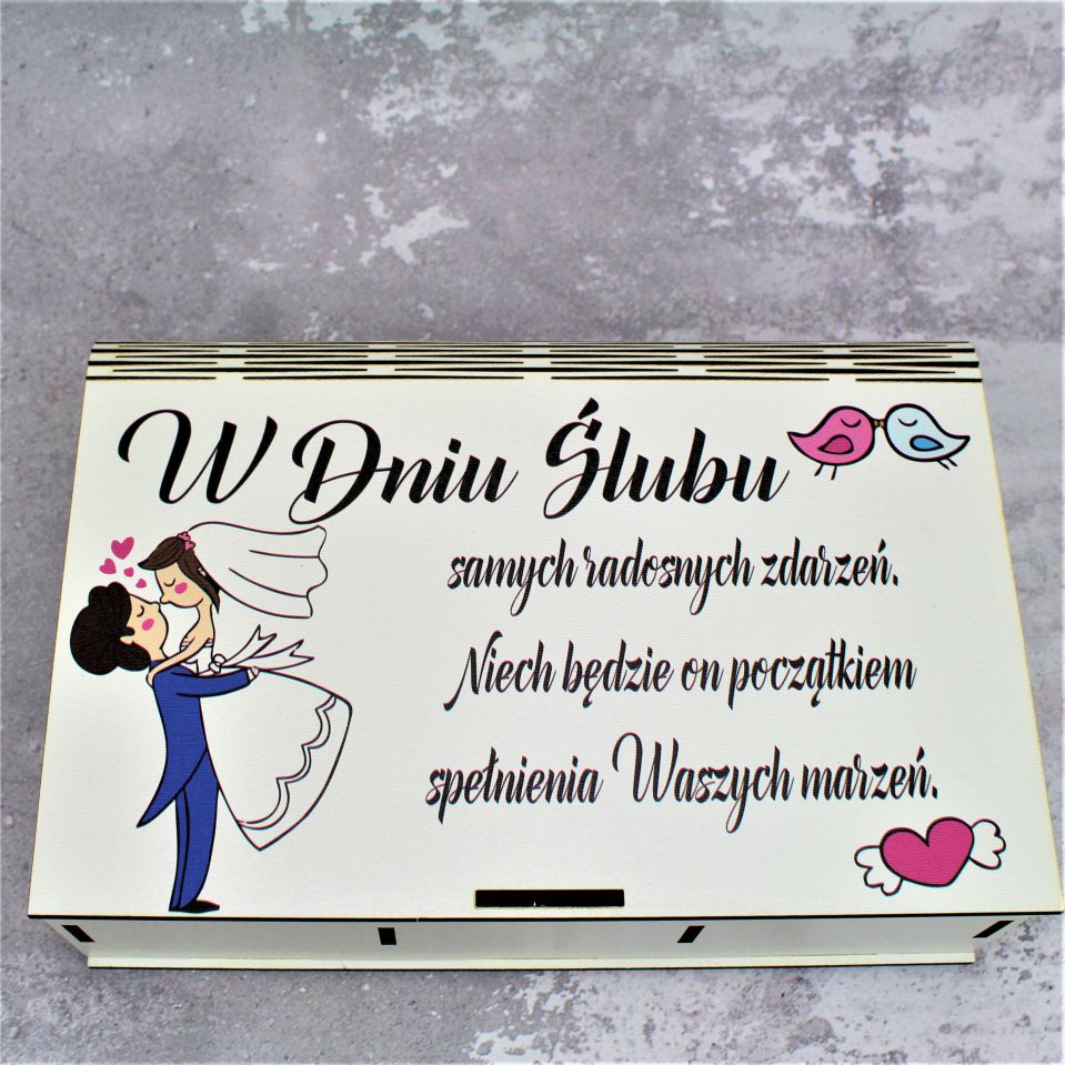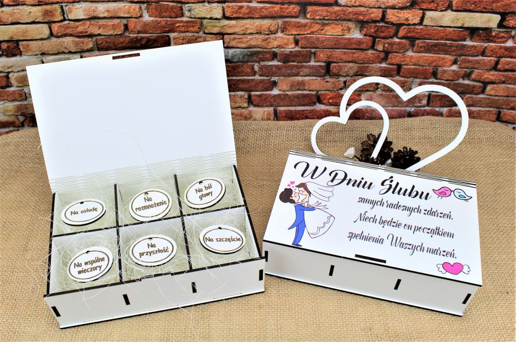 Ślub i Wesele to szczególny moment w życiu każdej pary. Oryginalny upominek podarowany prosto z serca, to idealny pomysł, by sprawić radość Młodej Parze. Jeśli właśnie zbliża się ten wyjątkowy dzień w życiu Twoich znajomych, rodzeństwa czy przyjaciół i nie masz pomysłu na prezent, proponujemy fantastyczną pamiątkę – kasetkę z kolorowym nadrukiem oraz żetonami, w której można ukryć pamiątkowe drobiazgi.