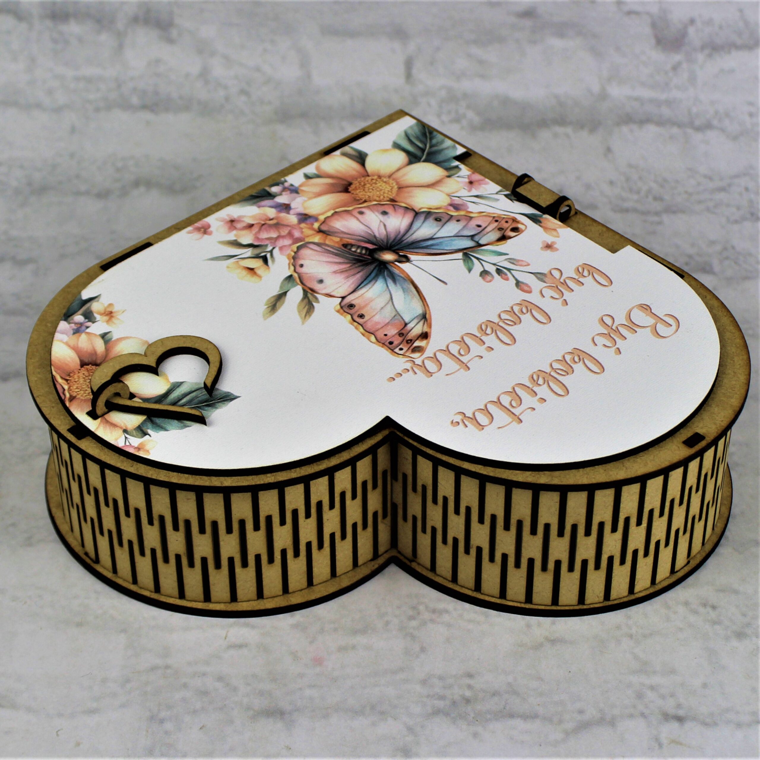• Pudełko wykonane z płyty Hdf o wymiarach 23 x 24 x 6 cm, zamykane jest ozdobnym serduszkiem, co nadaje całości wyjątkowego uroku i podkreśla jego romantyczny charakter.