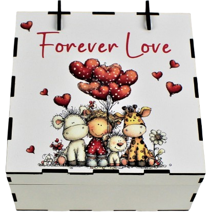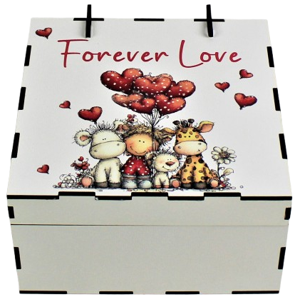 Pudełko Walentynkowe z kolorowym nadrukiem – 4 przegrody na herbatę lub drobiazgi.
