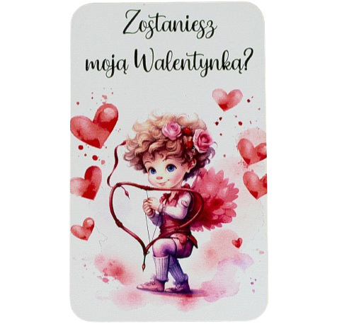 • kolorowy nadruk o tematyce walentynkowej z jednej strony