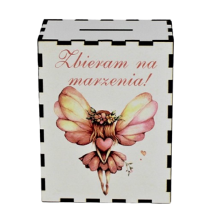 Śliczna skarbonka z kolorową grafiką w żywych barwach, która świetnie sprawdzi się jako prezent lub element dekoracyjny.