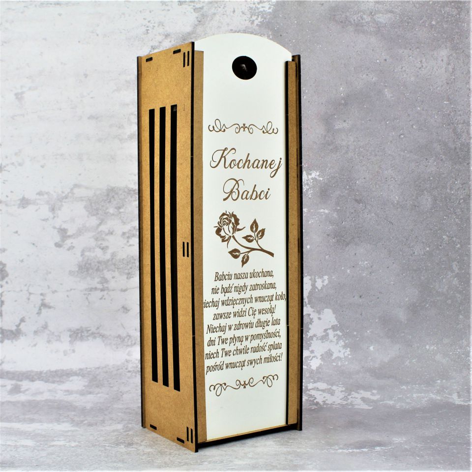 Skrzynka na wino z życzeniami dla Babci