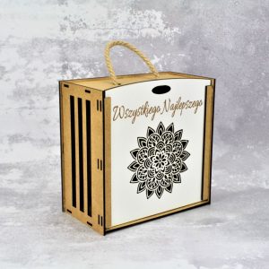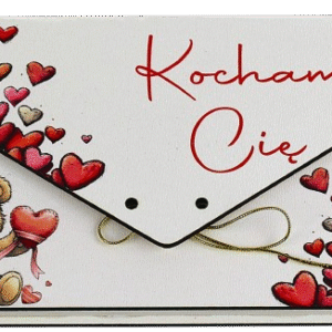 Nadruk jest kolorowy, wyrazisty i wykonany dwustronnie, dzięki czemu pudełko prezentuje się efektownie z każdej strony. Dodatkowo z jednej strony znajduje się grawer ” Kocham Cię „, który nadaje całości jeszcze bardziej wyjątkowego i osobistego charakteru.