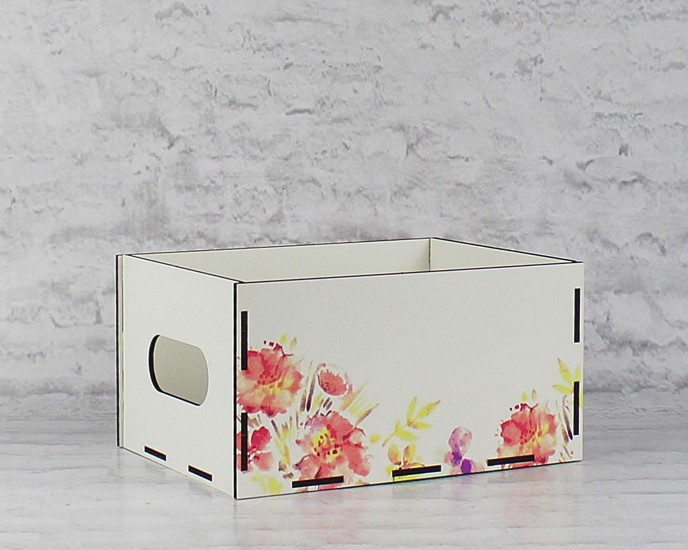 - Piękny kwiatowy nadruk – przód oraz tył skrzynki.