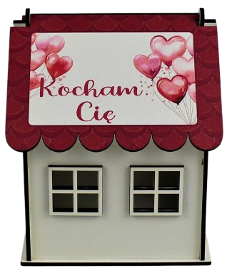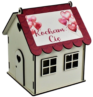 - domek walentynkowy z kolorowym nadrukiem na dachu