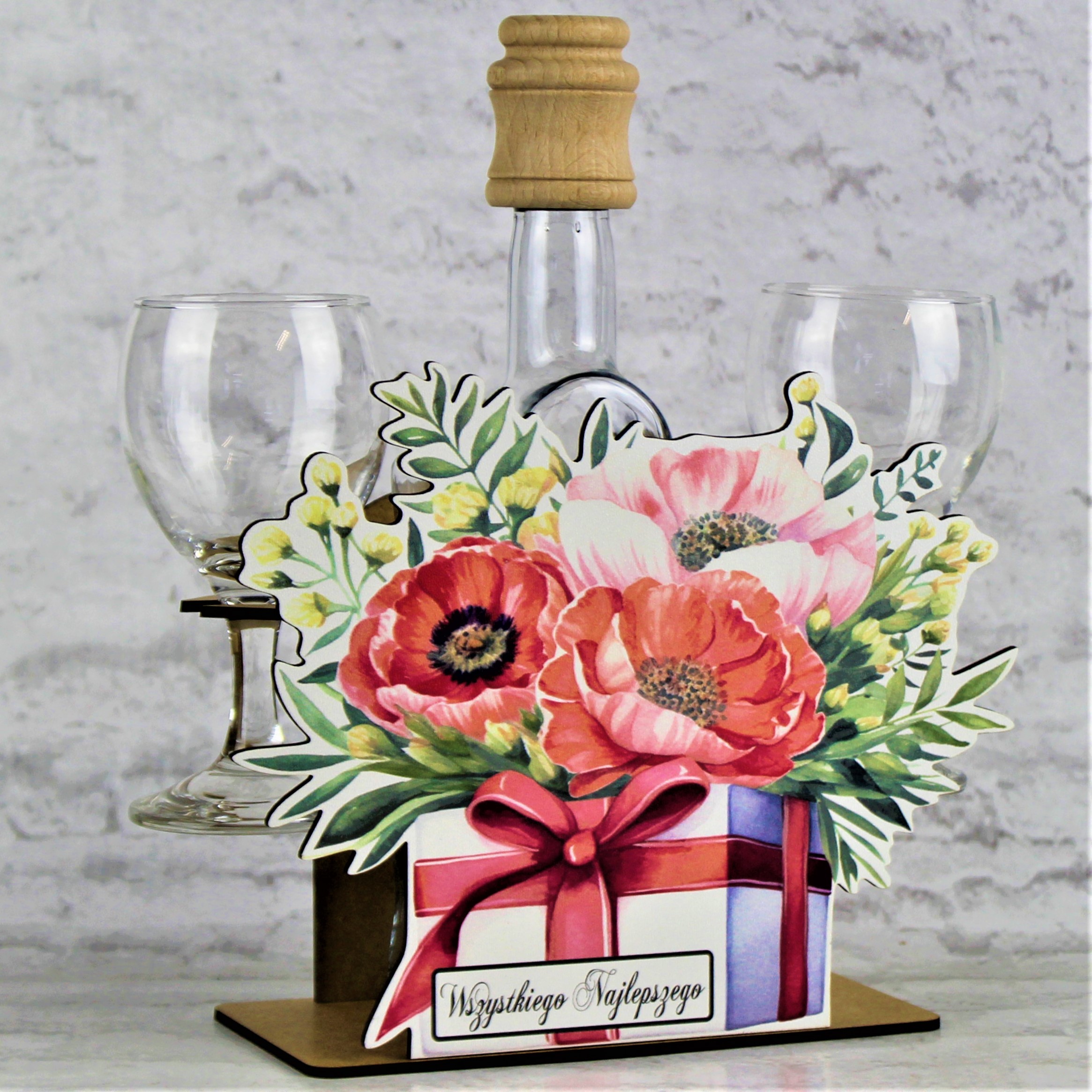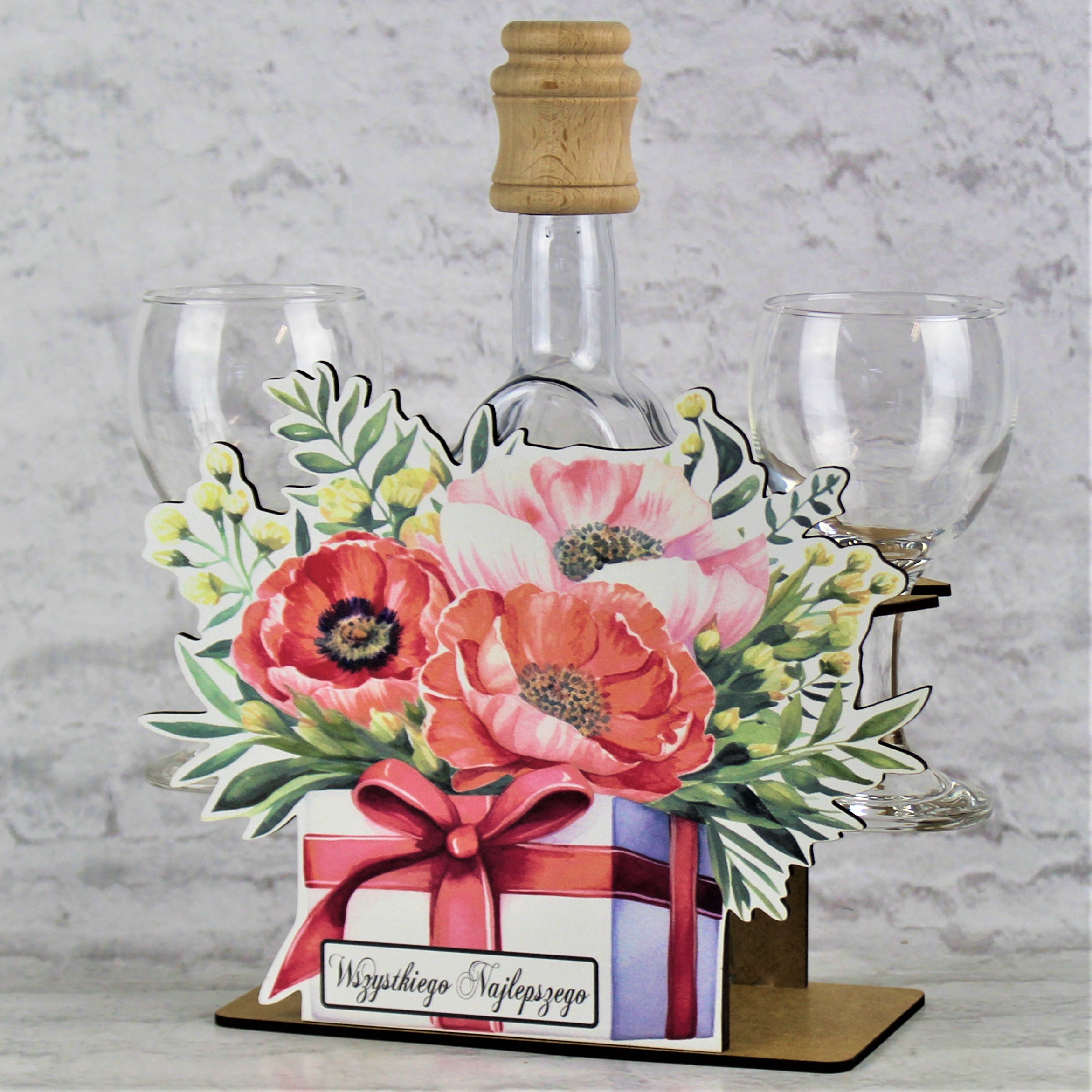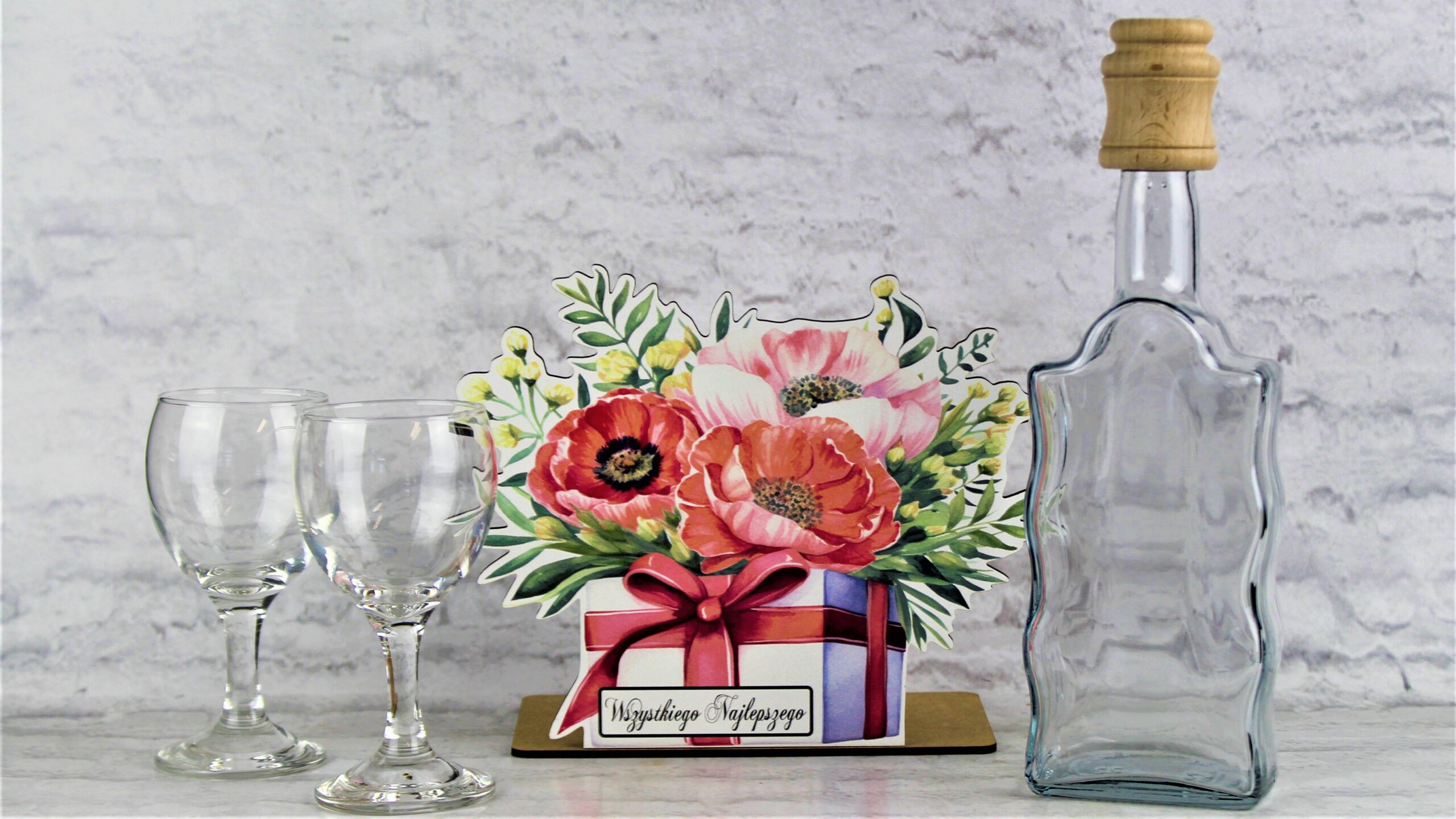 Ten wyjątkowy zestaw z karafką i kieliszkami umieszczony na ozdobnej podstawie z kwiatowym nadrukiem to idealny upominek dla kobiety – mamy, babci, żony, siostry lub przyjaciółki.